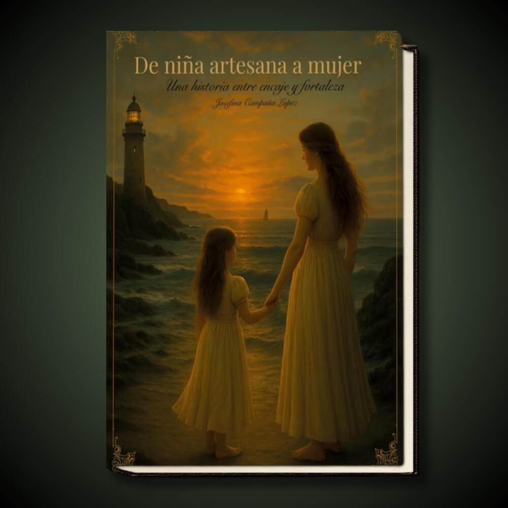 «De niña artesana a mujer» es mi testimonio más íntimo y personal, un relato de superación que nace desde lo más profundo de mi corazón. Desde mis humildes comienzos en Camariñas, donde aprendí el arte del encaje de bolillos siendo apenas una niña, he recorrido un camino entre hilos, pérdidas familiares, obstáculos sociales y personales que me marcaron profundamente.